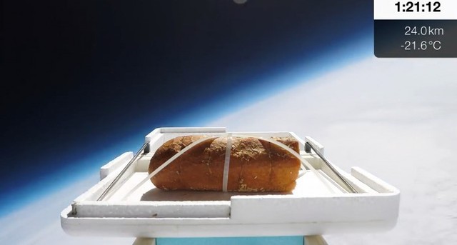 见过把面包送入烤箱的,没见过把面包送到地球边缘的,近日有youtube用户就做了一个大胆的试验,将蒜香面包发送到“太空边缘”。但是实验并没有结束,该团队最终回收了面包并食用它。