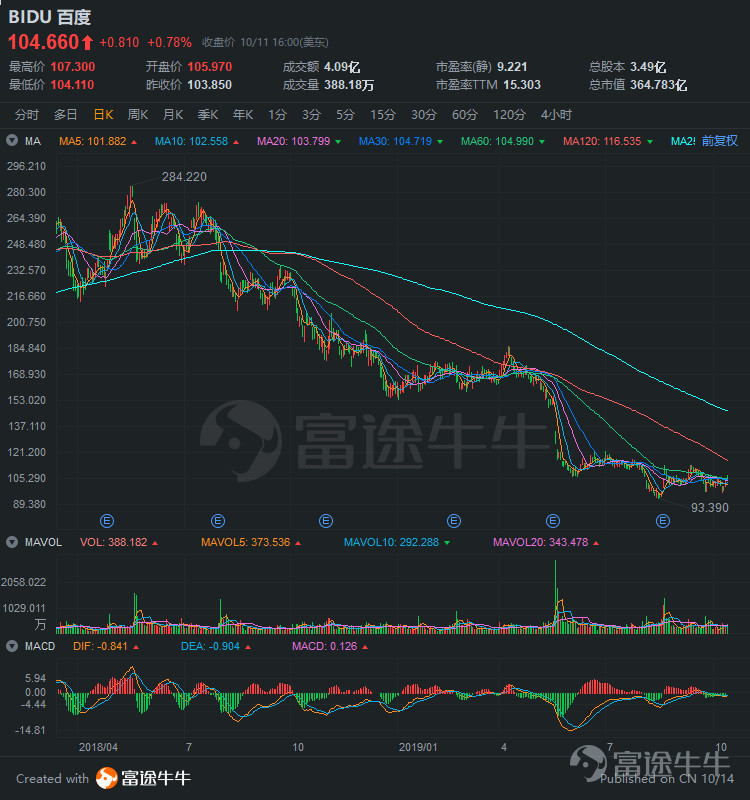与此同时,公司股价表现低迷,2019年至今(19.10.14),腾讯股价上涨近4.86%,微博下跌16.96%,爱奇艺上涨10.69%,最惨的是百度,跌幅直接达到34.01%。