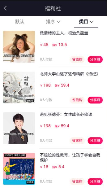 抖音的福利社这个功能给达人创作者(前提是你开通了商品分享功能)提供了变现的空间。创作者可以在福利社里自行选择想要分销的商品。抖音上的一些图书教育领域的商家商品佣金多在30-50%,可提供心理、情感、育儿、财经各个领域的图书/课程供达人选择分销。
